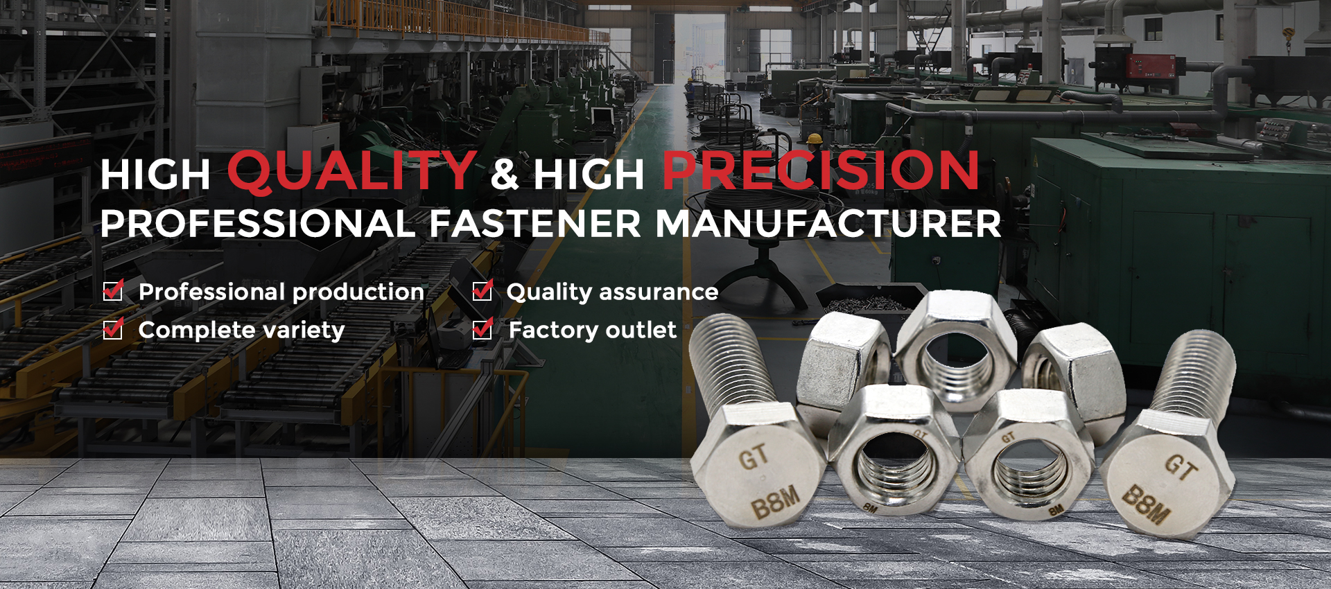 Shanghai G&T Industry Co. Ltd was founded in 1997, a fastener group that integrates product development, design, production and sales, and owns an area of 22,000 square meters with 220 employees. Our main products are M3-M100 standard fasteners of various specifications and models, especially the production of non-standard parts according to the drawing is our strength, we have various stainless steel, alloy steel, high temperature alloy and carbon steel products.
